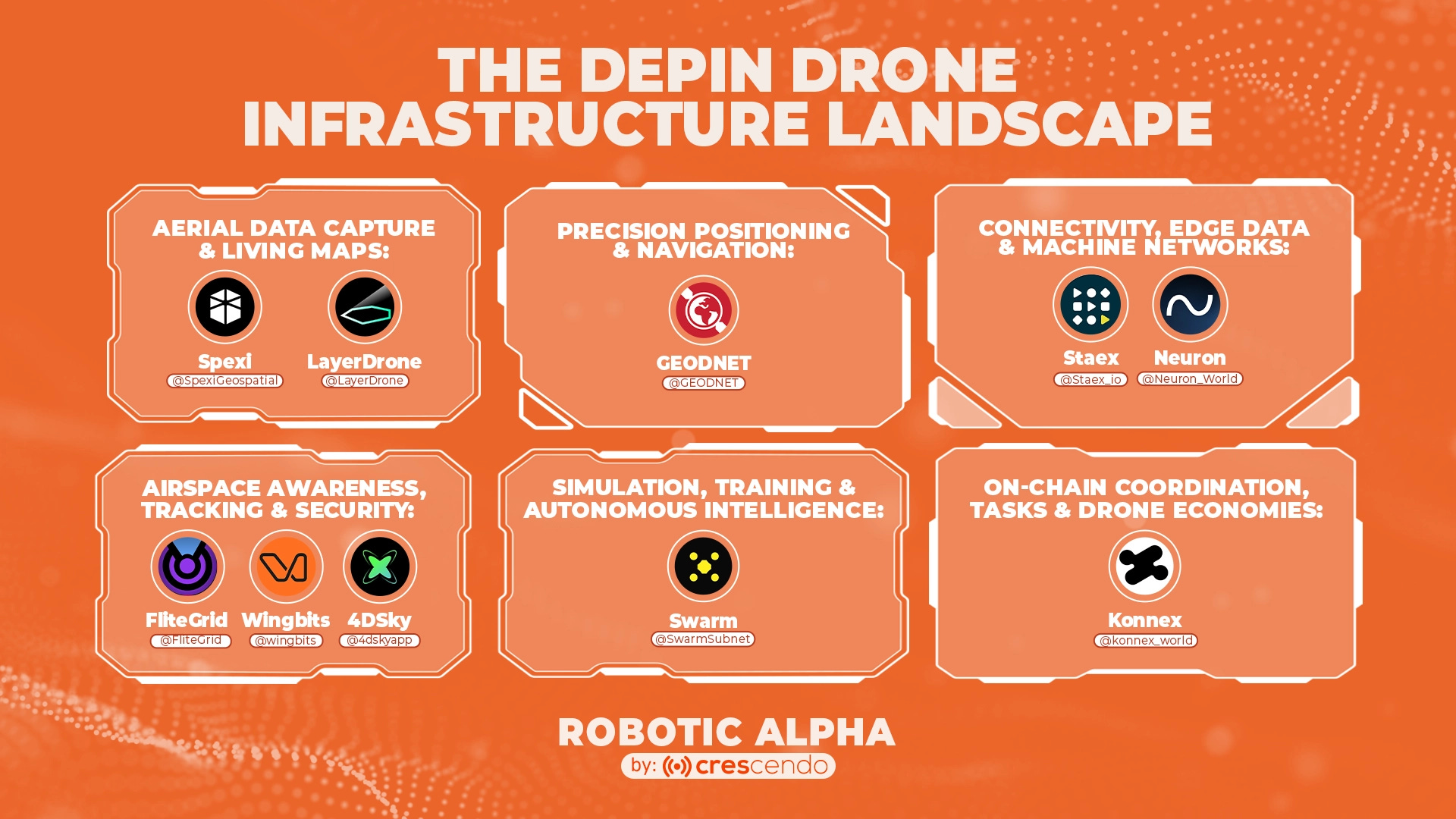 The projects discussed in depth so far: GEODNET, LayerDrone, and Swarm Subnet, sit at the core of the drone stack. They address where a drone is, how it understands its environment, and how it learns to behave safely. But once drones leave controlled settings and operate in the real world, additional constraints begin to dominate.