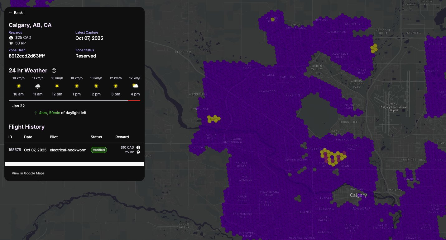 Drone pilots are the engine of the network. They open an app, pick a capture mission, fly a standard route, upload the imagery, and get rewarded. Each flight doesn’t just serve one client, it updates a shared visual layer that everyone can build on.
